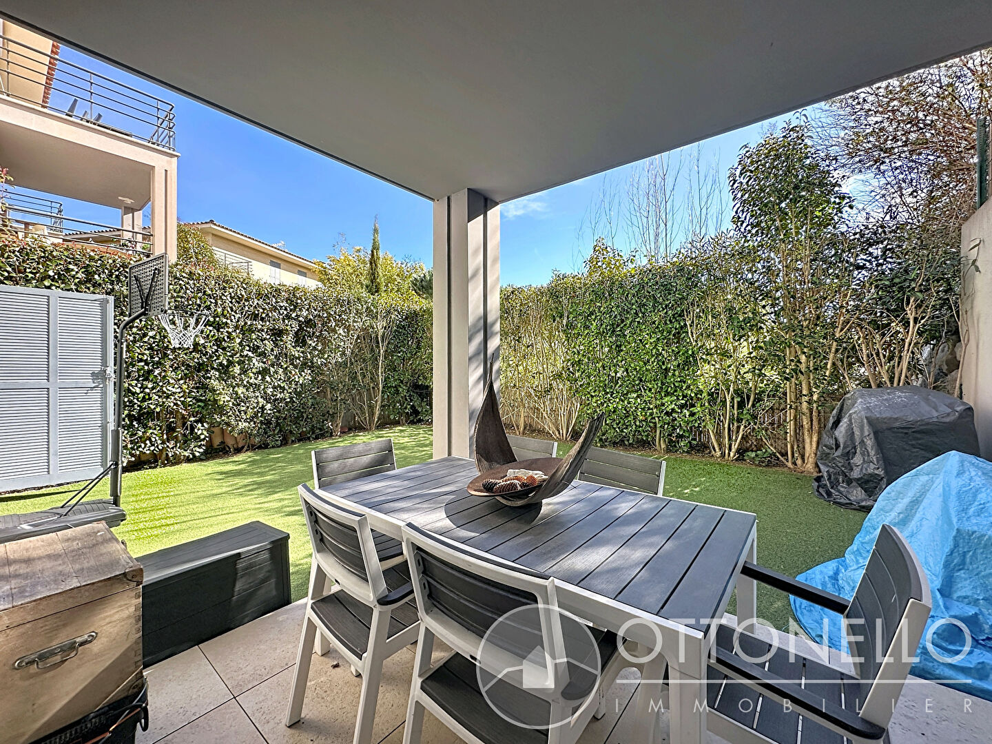 Appartement Roquebrune Sur Argens 3 pièce 57 m2 avec terrasse, jardinet et parking en sous-sol EXCLUSIVITÉ ! Sur le secteur du golf, dans une résidence récente avec piscine, un appartement trois pièces situé en rez-de-jardin comprenant une entrée avec placard, un séjour de 25,97 m2 donnant sur terrasse et jardin privatif de 64,52 m2, une cuisine ouverte aménagée, deux chambres de 9,44 m2 et 11,51 m2, une salle d'eau et un W.C indépendant. Une place de stationnement en sous-sol.Copropriété de 30 lots d'habitation, Charges annuelles : 1873,84 euros (Eau comprise)PRIX 260 000 euros HAI dont 3,85 % d'honoraires TTC.(prix net vendeur 250 000 euros + 10 000 euros d'honoraires à la charge du vendeur).Visites et renseignements à notre agence OTTONELLO au village, 18 Avenue du Général de Gaulle 04 94 45 70 44.Copropriété de 60 lots - dont 30 lots habitation. (Pas de procédure en cours).