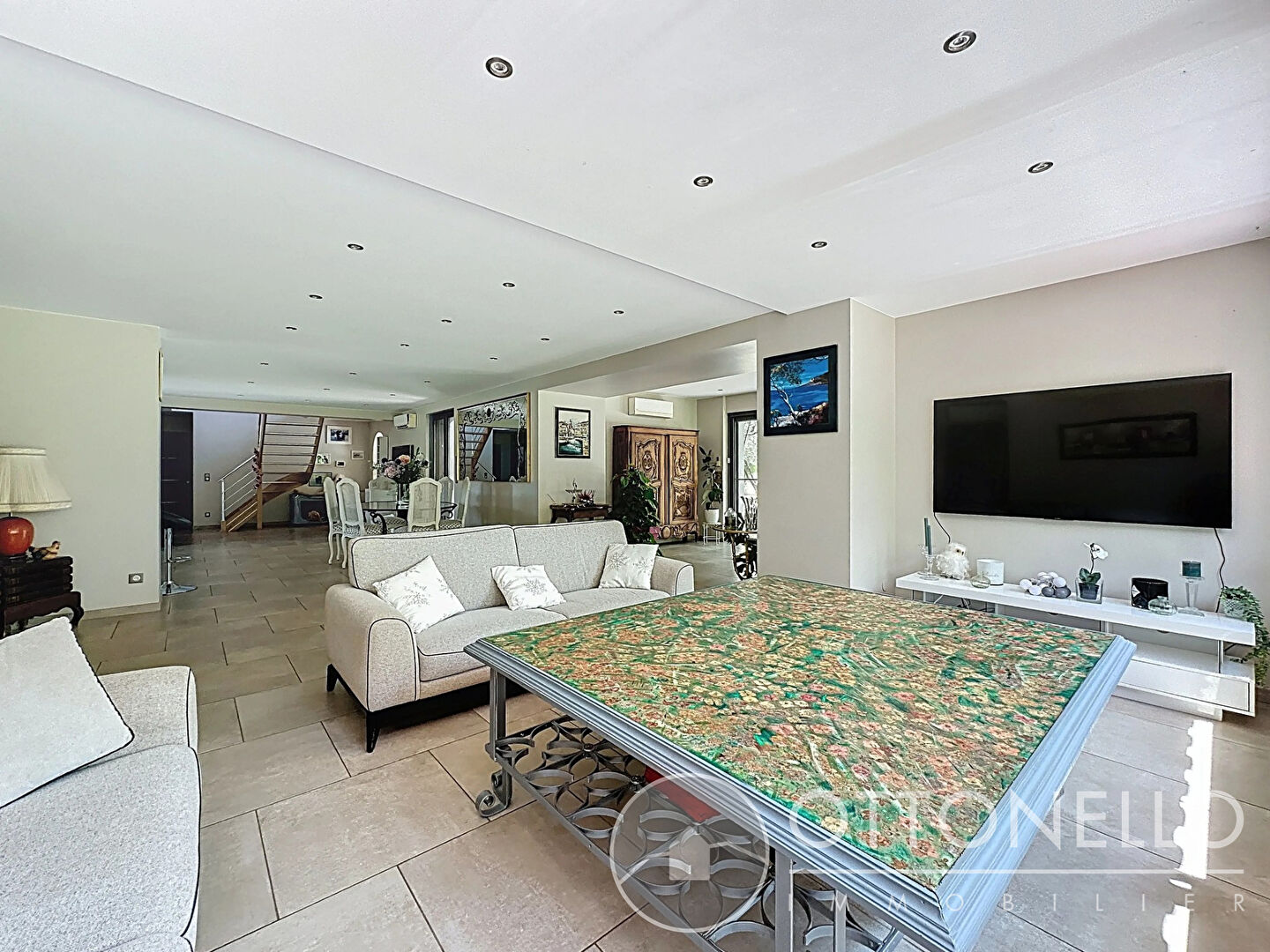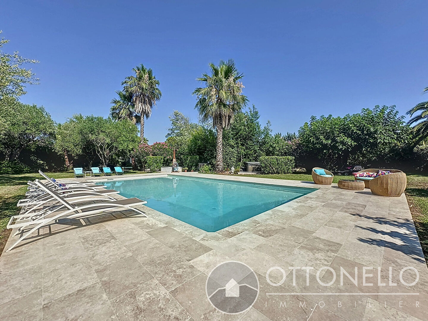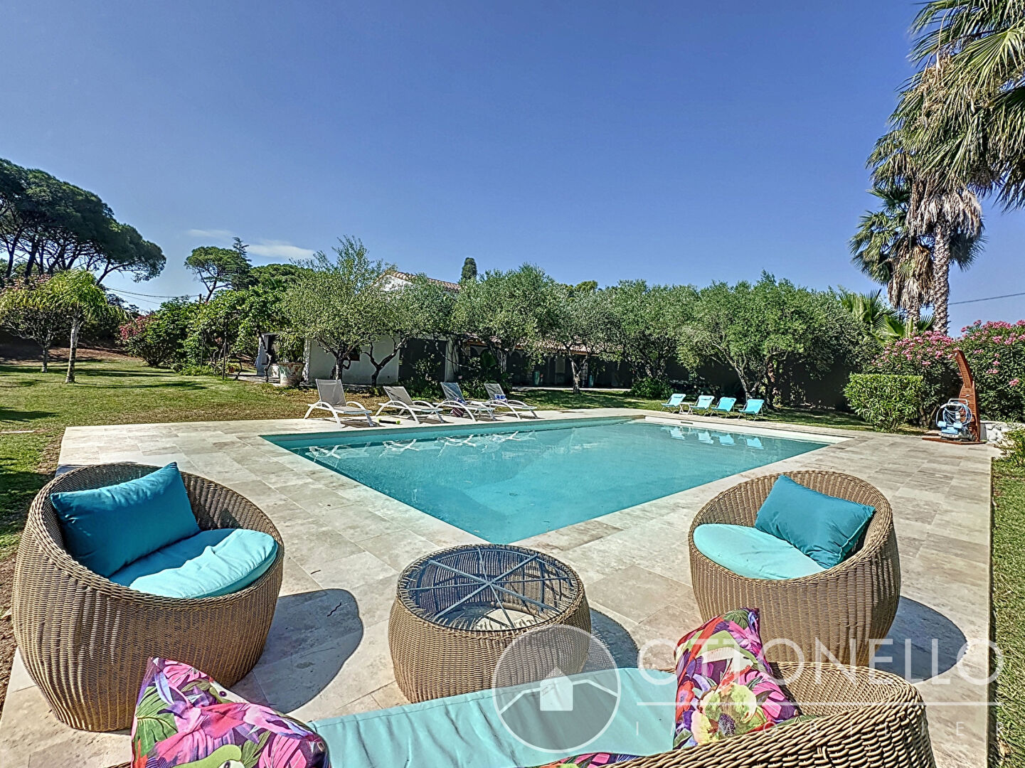 Villa Roquebrune Sur Argens 6 pièces 260.58 m2 sur 12 500 m2 de terrain avec piscine et tennis EXCEPTIONNELLE ! Dans un cadre idyllique et verdoyant, villa individuelle comprenant de plain-pied un hall d'entrée avec placard, un séjour d'environ 56 m2 avec espace bureau, une salle à manger, une cuisine d'environ 20 m2 entièrement équipée haut de gamme, un cellier-buanderie, une suite parentale de plus de 44 m2 avec dressing, salle de bains et WC séparés. A l'étage, un espace mezzanine d'environ 23 m2 et deux chambres avec salle d'eau-WC privatifs.Une chambre indépendante d'environ 12 m2 avec salle d'eau-WC.Terrasse couverte d'environ 46 m2 et cuisine d'été d'environ 22 m2.Climatisation dans toute la maison, chauffage au sol, baies en alu à galandage avec moustiquaires.Piscine 12 x 5 avec terrasse autour, jacuzzi, terrain de tennis, écuries et magnifique jardin arboré d'essences méditerrannéennes.Un abri voiture sur dalle d'environ 30 m2, un atelier de 10 m2 et une pièce d'environ 14 m2. Prix 1 680 000 euros dont 3,67 % d'honoraires inclus (prix net vendeur 1 620 500 euros + 59 500 euros à la charge des acquéreurs). Contactez notre agence OTTONELLO IMMOBILIER de la Bouverie au 04 94 44 03 83. (3.67 % honoraires TTC à la charge de l'acquéreur.)